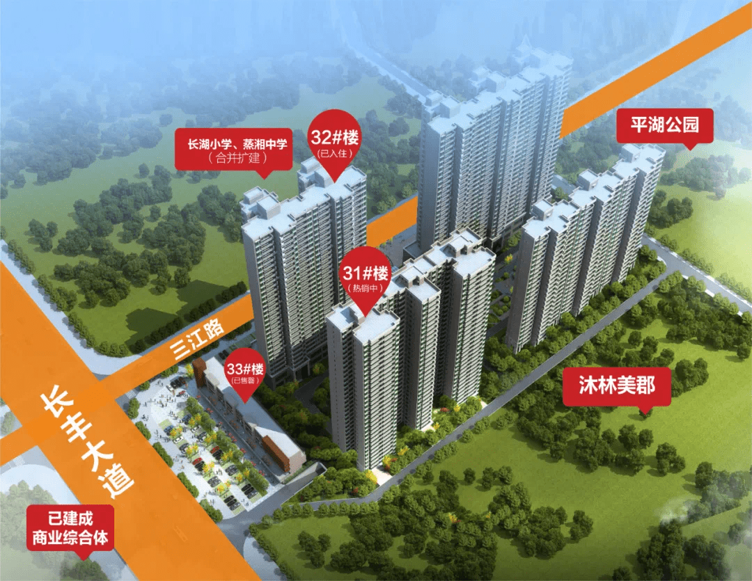 沐林·当代郡项目位于长丰大道与三江路交汇处,毗邻蒸湘区政府,周边景观资源、教育资源、商业配套等都非常齐全,是位于华新区的核心位置。