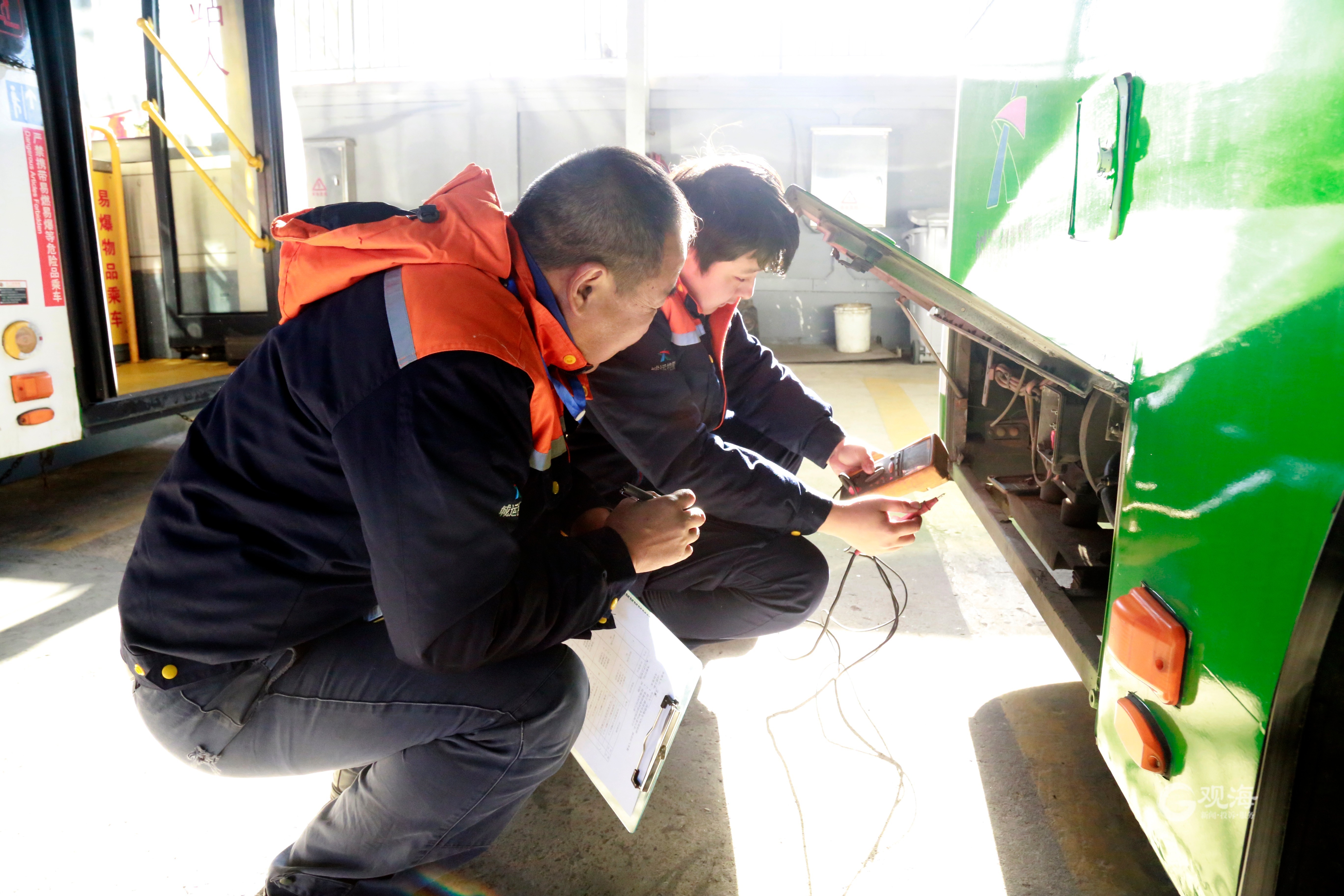 11月27日上午,在市南巴士八分公司滨江路场站内,修东西的人正对公交车开展“就诊”工作,重点对车辆电源、电路、制动、轮胎以及电瓶仓等项目进行检修,确保车辆技术状况良好、设备设施完好、性能安全可靠。“师傅,您这辆车的灯光、转向、轮胎……全部检查完毕,没问题,您放心运营!”修理工刘勇君和同事们正在对准备发车的车辆进行爱车例保,并将检查内容详细登记在记录表内。据了解,为应对特殊天气等突发情况,技术人员有序开展低温度的环境下的车辆保养工作,排查电瓶、防冻液、风扇带等安全部位,并针对不一样车型进行防滑链条试挂工作,排除一些故障隐患,杜绝“带病车”上路,保障市民乘车安全。